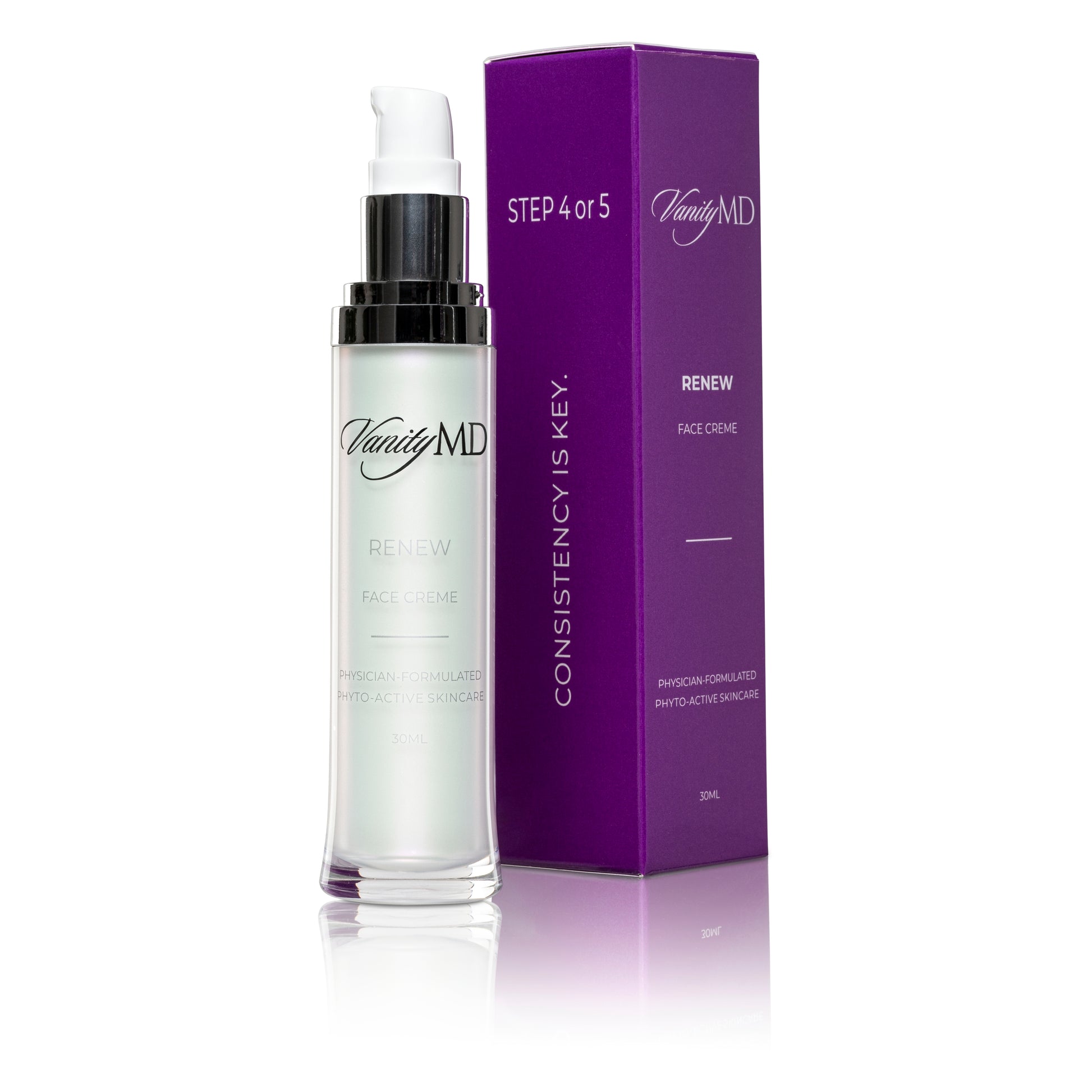 The physician-formulated VanityMD RENEW Creme is a luxurious, lightweight creme that penetrates deeply to nourish, repair, and revitalize skin cells. It effectively targets fine lines, wrinkles, and other signs of aging, promoting natural collagen production and improving skin elasticity for smoother, firmer skin!